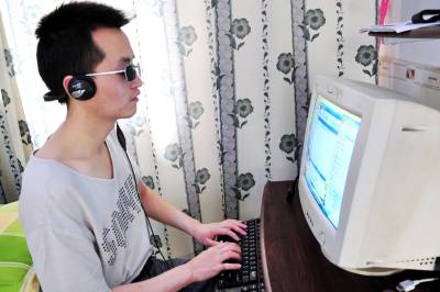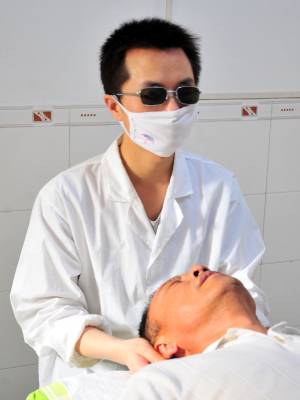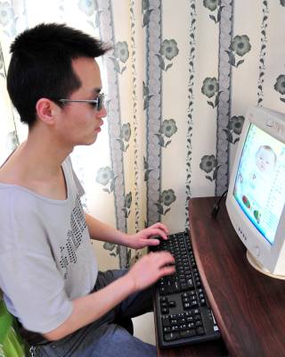 盲人吴启明是湖北省宜昌市夷陵区下堡坪乡人,没有上过学,靠自己刻苦专研,18岁学到按摩手艺后先后到浙江、武汉等地打工。 2008年,吴启明回到家乡,在夷陵城区小溪塔开办了”康宁按摩店”,招收了当地5名盲人做帮手和1名服务人员,母亲在店里帮忙做卫生保洁服务。50多岁的盲人师傅宋桂华感激地说,是吴启明给了他和老伴幸福的晚年生活。 两年多来,吴启明凭着自己精湛的按摩手艺,用灵巧的双手,为顾客推拿治疗,解除痛苦,加上店里干净、整洁的卫生环境,受到市民的青睐,在他的按摩店办理年卡服务的会员达到600多人。 吴启明自幼爱学专研,业余时间畅游网络的海洋,和网友们在网络天地里”侃大山”、交流按摩经验,还经常吹奏葫芦丝等民间乐器……今年26岁的他像一个快乐的天使,从不在意自身的残疾与不幸,用坚强和执著诠释着生命的灿烂。 吴启明特别爱上网,通过语音提示,熟练自如地操作键盘,和网友聊天,下载软件,浏览新闻信息等。吴启明说,他在网上最大的收获就是通过网络找到了心爱的伴侣。 吴启明和妻子温中香是2008年在网上认识的。温中香是湖北十堰人,她说在网上就感到吴启明是一个快乐进取的人,见面后对吴启明的爱慕之心更加强烈。如今他们俩的爱情结晶——可爱的小宝宝已经三个多月了。 事业有成,收获爱情,家庭和睦,并让5位盲人找到了就业门路,有了生活的依靠,吴启明感到前途一片光明。他说,他会一直快乐的生活,做好自己的按摩事业,靠自己的双手,为市民”送健康、解疲劳”,让自己的创业路上充满阳光。本报视界网张国荣摄