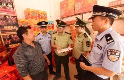 “紧绷安全弦,防患于未然。”日前,保康县公安局在全县范围内启动了为期一个月的烟花爆竹安全隐患大排查行动。此次排查,民警将重点围绕烟花爆竹销售点的消防设施、销售渠道、存放场所、产品质量等情况展开。同时,将组织警力对可能非法销售烟花爆竹的副食店、日杂店、农村兜售摊点等进行全面清查,以此消除安全隐患,最大限度地减免火灾、爆炸等安全事故的发生。 图为:10月24日,保康民警正在辖区一家烟花爆竹销售点进行安全检查。(视界网 欧阳智慧 摄)