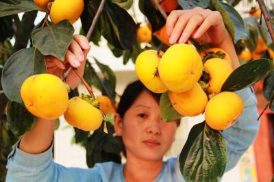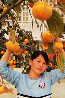 安陆市地处大洪山与江汉平原交汇处,其丘陵地形广布,为发展特色林业提供了有利的条件。近年来,该市政府主导、林业牵头、公司介于,一个发展银杏、板栗、油茶、柿子等特色产业的群众运动在该市蓬勃开展。目前,该市银杏、板栗、油茶、柿子的种植面积分别发展到1030万亩、53万亩、25万亩、16万亩,年创产值6.8亿余元,人均增收千余元。图为10月24日王义贞镇唐僧村农民的柿子喜获丰收。(视界网 王代金 高锦涛 摄影)