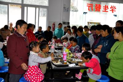 家长监督学生营养餐 10月27日,在恩施市红土乡乌鸦坝村小学,家长们正在观察学生吃着一晕一素一汤等免费的营养午餐。 近几年来,该乡各中小学校做好营养改善计划各环节的公开公示,严格管理阳光操作。家长委员会成员到学校食堂查看了购物登记,了解了学校午餐材料购买情况,参观了午餐操作。使全乡义务教育阶段的中小学校学生,享受到营养午餐标准,让他们吃得更香,更健康,家长更放心。( 彭绍峰秦达栋摄)