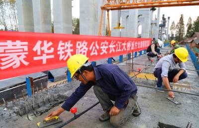 本报荆州讯(通讯员 孟庆虎) 10月27日,由中铁大桥局承建的蒙西华中铁路公安长江大桥公铁合建段首片公路箱梁浇筑,亦是蒙华铁路开工建设以来的第一片公路箱梁。