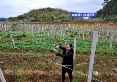 培植精准扶贫产业 28日,咸丰县坪坝营镇水车坪村的农民正将猕猴桃树苗捆绑上架。在精准扶贫中,水车坪村引进农业企业,由企业投资290万元,引导村民连片种植红心猕猴桃1400余亩,预计三年后进入丰产,猕猴桃将成为该村群众脱贫的致富产业。(视界网孙东进摄)