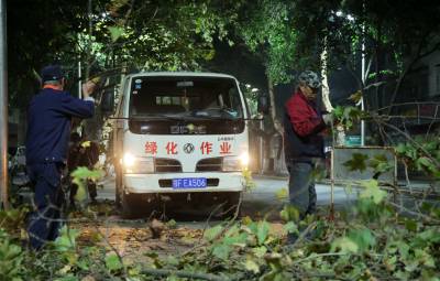 10月30日凌晨,在襄城区荆州街,市园林局市绿化管理处组织工人一边修剪树木,一边清理剪下的树枝。据介绍,秋冬季节树木枯枝掉落存在安全隐患,白天施工易造成堵车,工作人员将行道树修剪转为“凌晨模式”。首期,将修剪襄城城区约1万棵树木,除了修剪存在隐患的枯木,还将去除遮挡路灯、信号灯、指示牌的树枝。 (视界网 杨东 摄)