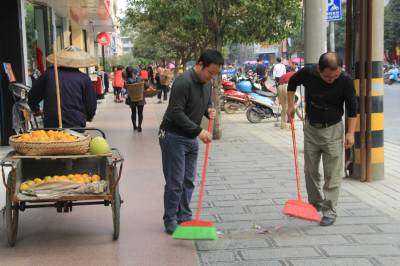 10月30日下午,来凤县农业局干部职工在县城步行街责任路段,有的进行街面保洁清扫,有的劝导机动车辆按停车位有序停放,有的督促临街商铺业主落实门前“六包”,有的清除街头“牛皮癣”广告。 自“六城”同创活动开展以来,该局认真组织干部职工学习“六城”同创的文件精神,在局机关院落内新划停车位免费接受社会车辆停放,落实门前“六包”责任,坚持每周五下午上街参加街面保洁等,积极推进“六城”同创活动。(视界网 邱俊杰 摄)
