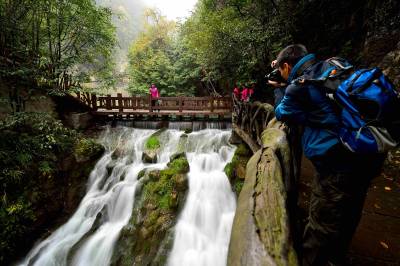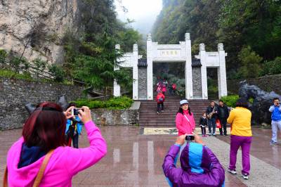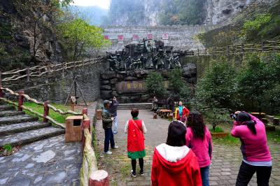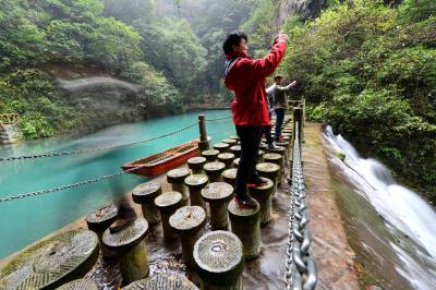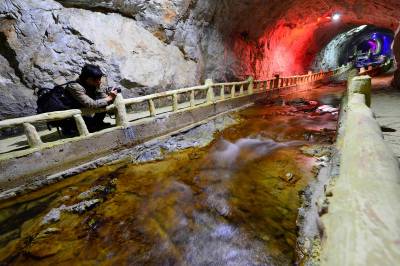 10月31日至11月1日,“豫见保康”户外旅游文化节在保康县马桥镇尧治河村举行,来自河南省的千余名游客专程到尧治河村景区游览。 尧治河村曾经是保康县马桥镇一个边远高寒山区特困村,经过20多年的集体化发展,该村修路开矿、筑坝办电、兴办企业,一跃成为保康县的首富村和全国文明村。 随着磷矿资源面临枯竭、生态环保遭遇挑战,该村党委决定大力发展旅游产业。近5年来,该村筹资近5亿元建设公路隧道、游步栈道,打造3个景点群,配套建设了农家乐、停车场、水上乐园等设施,打造出保康县第一家国家4A级景区,该村每年接待游客10万余人次。2014年,全村农民人均纯收入突破3万元,实现整体脱贫的目标。 (视界网 杨韬 摄)