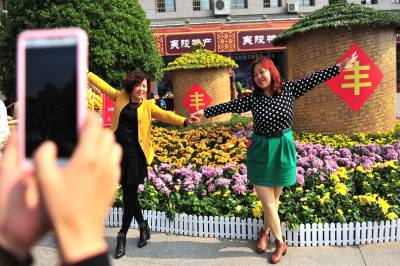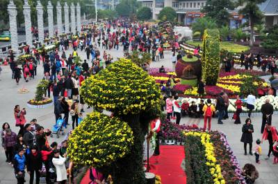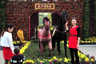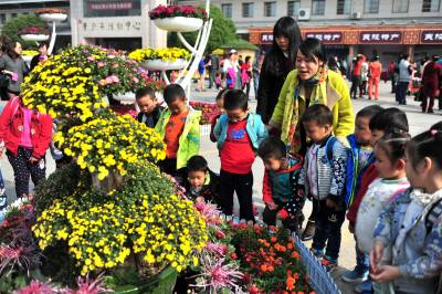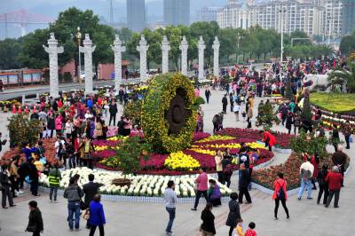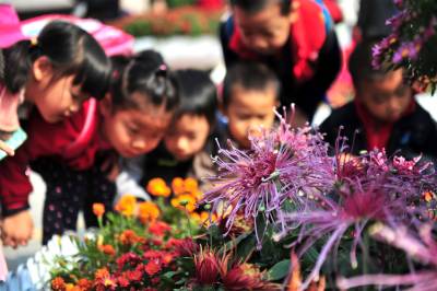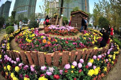 连日来,宜昌市第三十届菊花展在夷陵区河心公园连续开展。此届菊展首次到县(市、区)展出,自10月30日开展以来,形态各异的立体菊花造型每天吸引1万多名游人游览赏菊。展出活动持续至11月22日。 宜昌本届菊花展布置大型扎景、组景10组,部分扎景作品首次采用“栽植式”制作工艺扎制,11个展区展出菊艺作品150件、精品菊300余盆,共计80余个品种、23万盆菊花。视界网 张国荣 摄