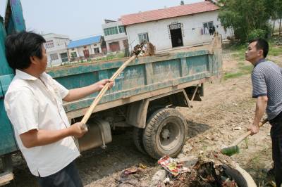 环保、环卫工作似乎离农村很远,一般垃圾都是随处乱丢,自然风化消解。但在京山县的”湖北省新农村建设示范村”--桥河村,环保、环卫工作却做得很到位。在这个村,通村公路直达每个村民家门口,低碳环保的太阳能路灯让村民出行更加方便;300多户村民,80%用上了干净的沼气,告别了柴火灶的烟熏火燎;垃圾回收桶遍布全村,村里安排专人专车收集生活垃圾,然后集中填埋。居住在桥河村的现代农民生活已和城市里的市民没有多大区别了。张文胜 摄