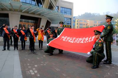 十堰: 举行社区消防宣传大使授旗仪式