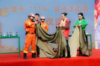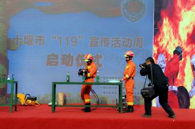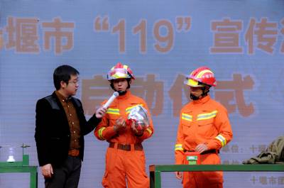 11月4日上午,十堰市消防支队在香格里拉小区举行十堰市2015年“119”消防宣传周活动启动暨社区消防宣传大使授旗仪式。公安.消防.民政.教育.消防志愿者和社会群众共计四百余名参加了启动仪式,同时也拉开了十堰市2015年“119”消防宣传周活动的序幕。
