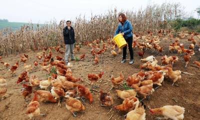 11月5日,竹山县宝丰镇韩溪河村三组张生礼和吴艳夫妇正在忙碌着在家庭农场喂养土鸡。近年来,该县在深入实施精准扶贫工作中,加大产业扶贫开发力度,加快土地流转,培植脱贫致富带头人,大力发展猕猴桃、核桃、茶叶、莲藕、郧巴黄牛等种植、养殖富民产业,通过农民专业合作社和龙头企业带动,增强大家脱贫致富的信心和决心,真正实现农民多种渠道创收增收促脱贫。