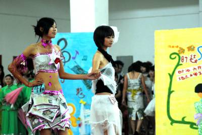 废纸旧报、饮料瓶子、破布……这些废品经过学生们DIY后,变成了漂亮的时装。4日,咸宁职院举行环保时装秀迎接”6·5世界环境日”的到来。据介绍,举办环保时装秀,目的是号召大家爱护保护环境,过环保低碳生活。记者夏正锋摄