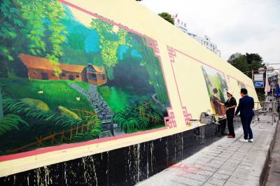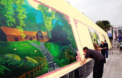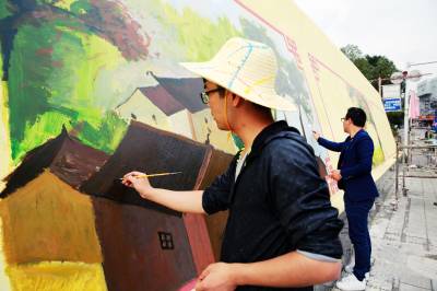 换颜文化长廊 6日,巴东县官渡口镇政府大院前,几名画家正在宣传墙上绘画。为了打造干净、靓丽、和谐、文明的新集镇,该镇政府投入资金将门庭约650平方米挡土墙原杂七杂八标语和广告清除,换颜成集民族特色民居、秀美田园风光、地方名胜景点等为一体的文化长廊。(视界网穆世祝 摄)巴东县官渡口镇中心学校(444309)