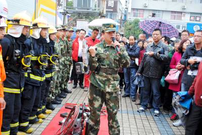 消防安全记心间 11月6日,南漳县举行2015年“119”消防宣传活动周启动仪式,消防官兵讲解展示消防特种器材装备应用。以此加大消防知识宣传力度,提高人民群众消防安全意识,增强城乡居民抗御火灾能力,让消防安全深入人心,牢记于心。(通讯员 晏光辉/摄)