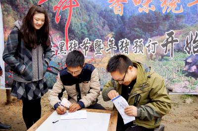 11月7日,湖北宜昌市雾都河山气温下降到8度以下,而宜昌二师兄生态土黑猪养殖有限公司确喜气洋洋,公司老板钟安君杀年猪,摆六桌酒端,请旅客吃新鲜,品土黑猪子格子蒸肉,旅客连声称赞,生态土黑猪肉嫩,口感好,当场宜昌一些大酒店及旅客纷纷交定金,签约年猪预定单,争着购放心肉带回家。