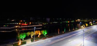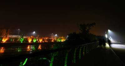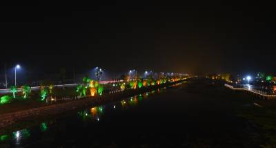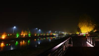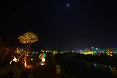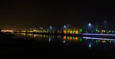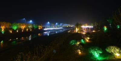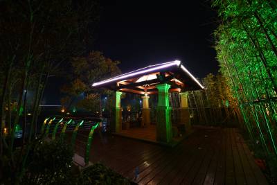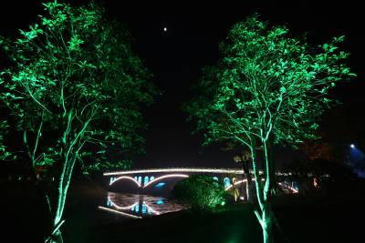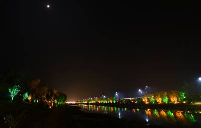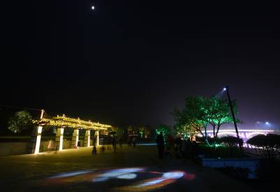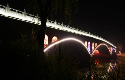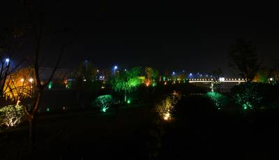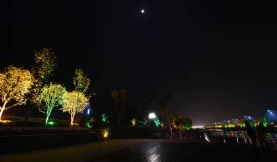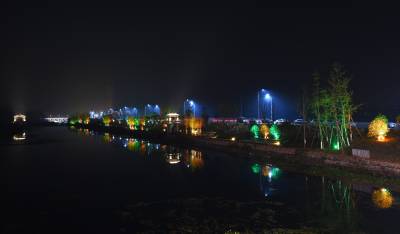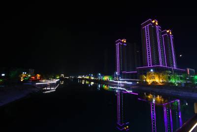每天晚上,黄梅县城滨河新区一河两岸的庭院灯、草坪灯、LED投光灯、LED像素灯等共8200多套各类景观灯全部亮起,绚丽的灯光在水面投影,形成水中有灯、灯水交映的美景。在远处,还可以看到景观灯与滨河东西路的路灯交织在一起,扮靓了滨河新区一河两岸,颇为壮观,成为我县城区的一道风景。根据滨河大桥、西河桥、人民大桥、晋梅大桥等建筑不同的样式,有与之相匹配的氛围灯,完美地将一河两岸的建筑物融入大景观之中。同时,在不少观景平台,我们还可以看到,黄梅挑花、黄梅戏、黄梅禅宗文化、黄梅诗词楹联等作品与景观灯巧妙搭配融合,让市民在散步、观景、观灯的同时,也可以感受浓浓的黄梅文化气息。