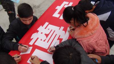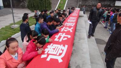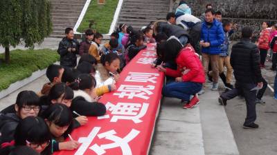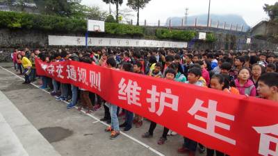 11月9日,鹤峰县走马镇民族中心学校的700余名学生在“遵守交通规则,维护生命安全”的横幅上签字承诺,争做遵守交通法规的模范。 冬季来临,该县各中小学为切实加强学生道路交通安全教育和宣传,组织了“关爱生命,平安出行”为主题的系列教育宣传活动,通过宣传栏、主题班会、法制讲座、印发《交通安全公约》等活动,切实增强中小学生的冬季交通安全意识和交通法制观念,全面加强校园及周边安全防范,提高学生自我保护能力和事故防范能力,共同为“关爱生命,平安出行”构筑交通安全防护网。