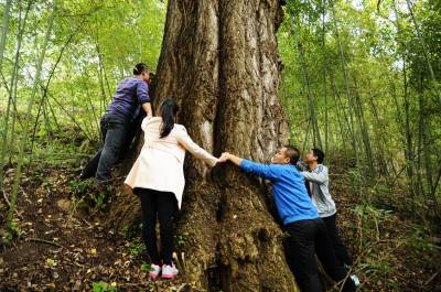 近日,许多游人慕名来到湖北省十堰市房县门古镇仙家坪村3组观看银杏王。该银杏树高约28米,胸围6.35米,胸径2.10米,树冠27.10米,古树树龄约为1600年,被当地人称之为银杏王,被当作树仙朝贡,该树长势旺盛成为当地一景而成为一张名片。 视界网周家山 摄