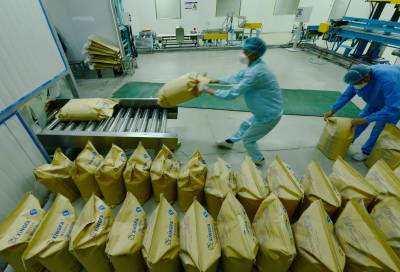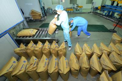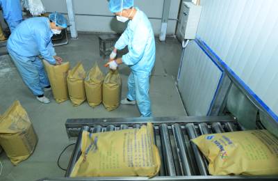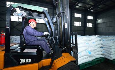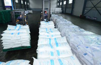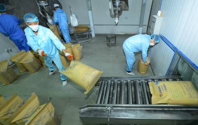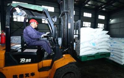 11月10日,工人在保康县楚烽公司五钠生产线上加班加点生产。