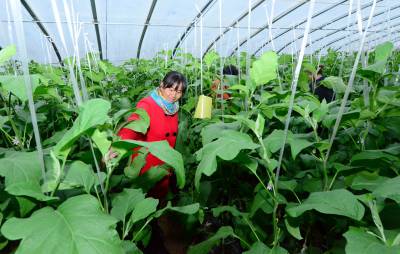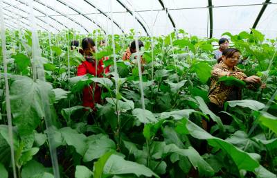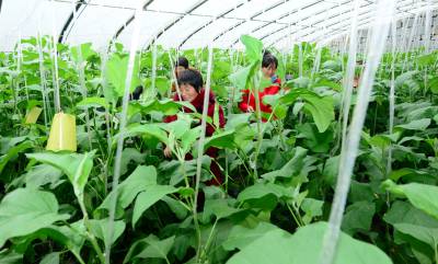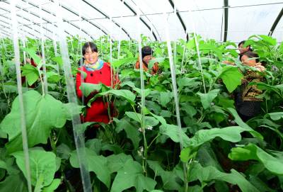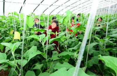 11月11日,村民在保康县寺坪镇庹家坪村蔬菜专业合作社大棚里劳作。