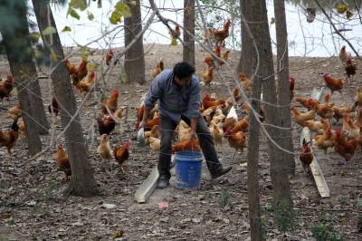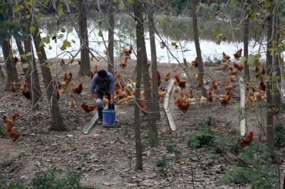 2015年11月11日,云梦城关镇邱聂村养殖户在林下放养地方土鸡。