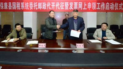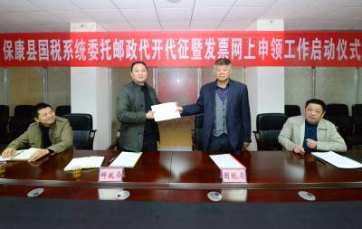 11月9日,保康县国税局委托保康县邮政分公司代开代征暨网上申领邮递发票启动仪式,在保康县国税局举行。