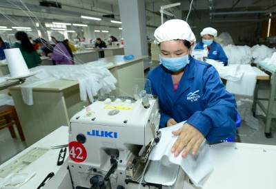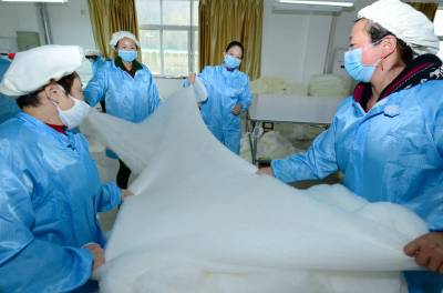11月12日,工人在湖北美莱丝绸纺有限公司生产车间作业。
