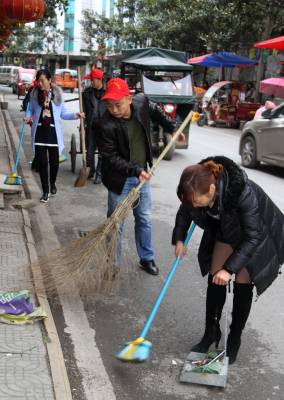 服务群众进社区 11月13日,咸丰县烟叶分公司员工在清扫城区道路垃圾。该县干部职工进入社区网格以开展爱国卫生、文明劝导和联系服务活动的方式,创建文明卫生城市。 本报视界网 周方奎 摄
