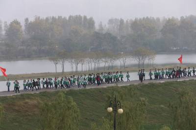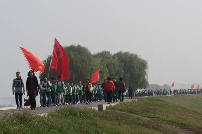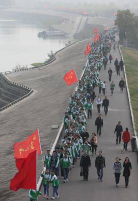 2015年11月14日,1500名高中二年级学生在学校教师的率领下开展近40公里的远足锻炼,少数学生家长们自发地沿途拉起条幅为孩子加油。当天,湖北省襄阳市第一中学的师生们以班级为单位,排成长队,浩浩荡荡地从学校出发向古隆中风景区方向行进。学生们自带干粮,到达湖北文理学院后稍做休息,再原路返回,整个路线长达40公里。