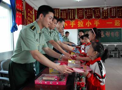 武汉军械士官学校雷达系献爱心活动延续—东升农民工子弟学校多名贫困优秀学生再次受到资助武汉军械士官学校雷达系在周五下午的党团活动中,来到了洪山区东升农民工子弟学校,再一次看望了一批家境贫困、曾面临辍学的学生,他们为学生们送来了学习和生活用品,并走访了几名贫困生的家庭。据了解,该单位连续六年资助东升小学的贫困学生,通过”1帮1”结对子、献爱心,帮助他们完成学业。目前该单位资助的贫困学生有的已经小学毕业,为引导他们树立正确的价值观和人生追求,官兵们与他们进行了”国防知识连连看”、”我的故事讲给你”等活动。小朋友们对解放军叔叔所展示的高科技武器表现出了极大的兴趣,该农民工子弟学校校长当即表示:”解放军叔叔是祖国的守护神,是传递爱心的使者,我们一定要向他们学习,努力学习文化知识,努力成为有用之才,用自己的行动奉献社会,传递爱心。”(易英明、王瑞报道)