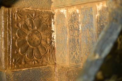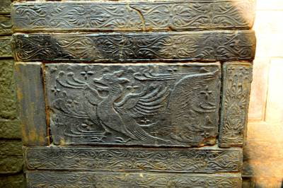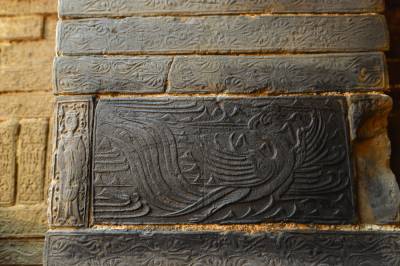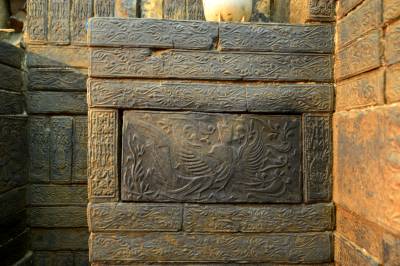 更为值得称道的是,每一块砖上都模印有纹饰,有的在端面,有的在侧面或平面,其内容有朱雀、玄武、千秋万岁、郭巨埋儿、莲花等。这些儒、道、佛教题材的画像砖,反映了当时统治阶级以儒教治国,同时流行道教神仙思想,并大力提倡佛教的社会现实。