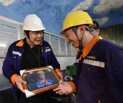 拍完照片以后,摄影家们现场进行了打印,并用相框裱好后一一送给了现场的矿工。当采矿车间凿岩台车班班长胡志兵接过打印装裱好的照片时,兴奋地说:“没想到我们的这群普通的矿山工人得到了这么多摄影名人的关注,还为我拍摄了好几幅照片,很有纪念意义,这些照片我们要好好地珍藏。”在活动结束时,摄影家与矿工们在井下巷道合影留念。