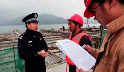 11月18日,在地处秭归县的三峡翻坝物流园建设工地,民警走近外来民工对其宣讲身份证异地受理的注意事项。在公安部推出居民身份证异地受理的便民举措后,秭归县公安局为避免该便民新政在外来人员中生出“误读的烦恼”,组织民警走进外来人员集中的工厂、矿山和建筑工地,重点就身份证异地受理从试点到全国推行的时间表、路线图和受理流程,向外来人员加大宣讲力度。(视界网吴令剑摄)