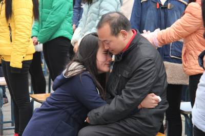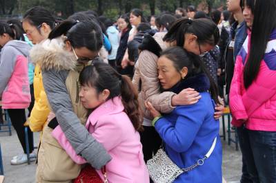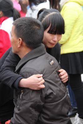 爱的拥抱 “老师,我爱你。”“爸爸妈妈我爱你们。”一句句发自内心的呐喊在丹江口职业技术学校校园响起。11月18日下午,以“情满校园,放飞梦想”为主题的青少年道德教育巡回演讲活动在该举行,中国素质教育专家张彦伟老师与孩子们分享如何用感恩父母、感恩老师、感恩社会的心面对学习和生活。学生和老师深情拥抱,孩子给父母感恩拥抱,让在场的千余名中小学师生及家长流下了激动的眼泪。视界网 钱芹 摄 详细通联:丹江口职业技术学校办公室:钱芹 邮政:442708 手机:13477990812