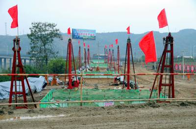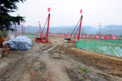 11月19日,在丹江口市六里坪镇,汉十高铁官山河特大桥施工现场,各项基础设施准备工作正在有序进行,汉十高铁即将迎来全线全面开工。