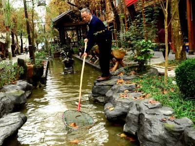 乐当义务保洁员 11月20日,来凤县革勒车镇二龙社区退休老干部吴正平,在按时清洁集镇水系漂浮物。今年70岁的吴正平是政法战线退休的一名老同志。自集镇“水上水”景观建成以来,一直是整个水系的义务保洁员,他不分天晴下雨,一天两次对全长850米的水系进行义务保洁。 本报视界网 姚丙然 来凤县革勒车镇文化服务中心 电话:13997799385