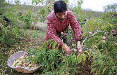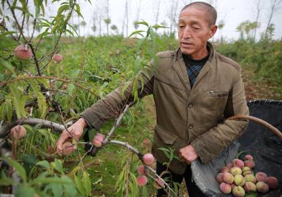 11月20日,游客正在襄州区黄龙镇冬桃产业示范基地采摘冬桃。黄龙镇冬桃种植项目是“十二五”湖北省重点扶贫项目,襄州区近年来在黄龙镇丁湾村、陶巷村、明岗村、陈岗村等村发展连片冬桃种植基地3000亩,修建田间道路14条,配套水库、机井、泵站等设备,带动200多户种植专业户脱贫致富。