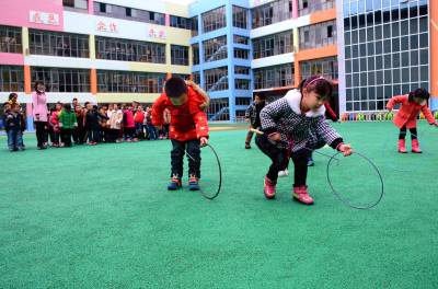 11月18日,宣恩县民族幼儿园内,小朋友正在玩民间传统游戏滚铁环。该校从弘扬民族传统体育文化、推荐具有地区特色体育运动项目、锻炼学生体质的目标出发,推出一系列传统游戏项目,深得孩子喜欢。