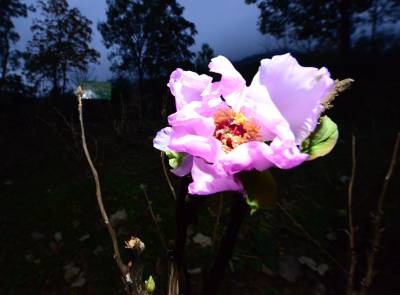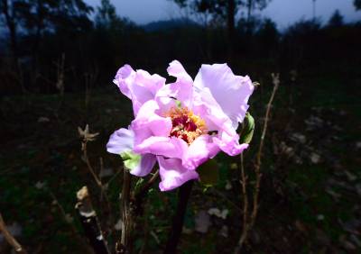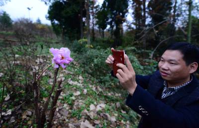 保康县林业局工程师王波介绍,初冬时节牡丹开花属于春化现象,有的植物需要经过一段时间低温,才能萌发开花结实。前段时间由于经过一段时间低温,目前温度尚在10℃度左右,牡丹6℃以上时芽就可以长开花。单独这一株开花,有可能是遗传原因。 (视界网 陈泉霖 摄)