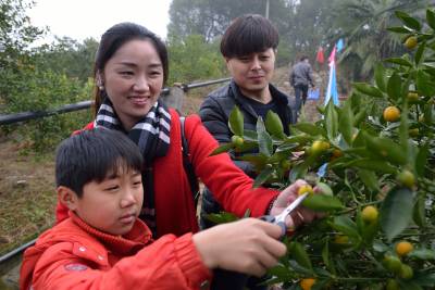 万株金桔迎客来 11月21日,宜都市枝城镇全心畈“太极岛养生苑”的金桔园里,游人们在采摘金桔。入秋以来,该园一万多株金桔陆续成熟,每到周末,前来采摘金桔的游人络绎不绝。 21日开园当天,该园还举行了“园中寻宝”、“捉土鸡”游戏,游人们在采摘金桔的同时,也参与游戏中,其乐无穷。