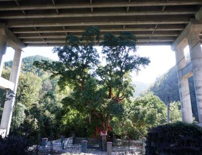 十堰市郧阳区2004年11月18日开工建设的107公里"十漫"高速公路就保留下一个大树,如今在郧阳区柳陂镇舒家沟村互通西侧你可以看到一个高大的香樟树,高15米,胸径90公分,胸围2.40米,树冠直径20米,当时建高架桥互通时设计单位避开香樟树,让舒家沟村村民们感到欣慰。
