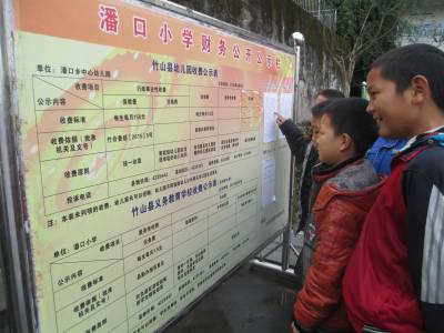 11月24日,竹山县潘口小学学生在该校财务公开栏前观看上个月学校收入支出明细表。为加强对学校行政权力运行的制约和监督,促进学校党风廉政建设和不断提高学校财务管理水平科学化、民主化、精细化。今年,竹山县教育局制定了《竹山县中小学幼儿园财务公开实施办法》,在全县中小学、幼儿园强力推行学校财务公开工作,全面提升学校财务管理水平。各校通过教职工大会选举了产生6至10名教职工代表,成立了民主理财小组和校务公开领导小组。组建了财务公开办公室,明确职责,形成了上下齐抓共管,干部教职工积极参与的工作格局。各校大宗物品采买、项目建设等均由民主理财小组成员召开会议讨论决定。对购置办公用品、后勤粮油蔬菜等的发票必须先由学校财务公开小组两名成员核定实物后签字,再交给经办人和总务主任等签字,严把物品采购关。每月定期张榜公布学校的日常收支、公用经费、伙食费、教育惠民专项收支、代收代管资金收支以及涉及教职工切身利益和有关财务的社会热点的经济事项,广泛地接受师生和社会各界的监督。为把此项工作落到实处,县教育局还定期派出了工作组深入各校,对学校财务进行专项督查,对违纪违规的学校和个人进行通报,责令限期改正,并依规依法严肃处理单位负责人和直接责任人。从而构建了制度保障、监管措施、检查督促“三到位”的学校廉政建设体系,全力打造学校阳光财务,筑牢防腐墙。