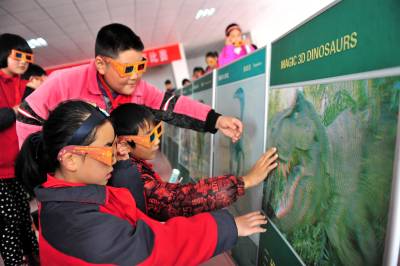 2015年11月25日,宜昌市夷陵区青少年活动中心“科普大篷车进乡村校园”首站巡展在樟村坪镇中心学校启动,学生们通过观看3D图片展览,以及参观了解和实践操作体现声学、光学、电学、力学等科普展品,在亲身体验中感受科学带来的快乐和科普展品的神奇魅力。此次科普大篷车巡展活动将陆续开进全区12个乡镇(街道)的所有中小学,“零距离”传播普及科技知识,让山里娃共享科普“盛宴”。视界网 张国荣 摄