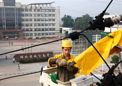 6月4日清晨,咸宁供电公司配电中心带电作业班在咸宁高中检修配电线路。为确保全国946万余名考生的考场稳定供电,国家电网公司属下各省、市、县市供电公司提前巡查、检修各考点的配电设施,以双电源加发电机组热备用保障各考场的电力供应。