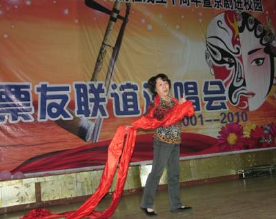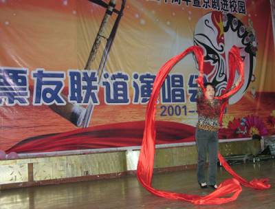 6月5日,一位京剧爱好者正在表演著名京剧传统剧目《天女散花》。当日,湖北宜昌、恩施、利川及重庆万州四地京剧票友在湖北民族学院举行联谊演唱会,把我国的国粹京剧送进了高校校园,受到广大师生欢迎。本报视界网周光兵摄恩施日报社记者部周光兵13277584567