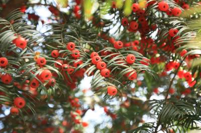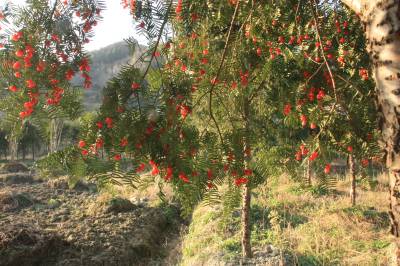 红豆杉又红了 12月27日,生态村竹溪县水坪镇大石门村人工栽培的红豆杉硕果累累。