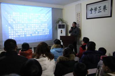 2015年12月25日,云梦养正学堂邀请云梦县文体局副局长刘建明为孩子及家长上国学课,受到孩子、家长的欢迎。主讲人以《文化云梦 孝法传承》为主题,结合云梦深厚的历史文化底蕴,深入浅出,为孩子、家长上了一堂生动的传统孝廉文化课。