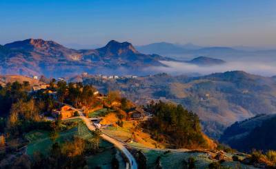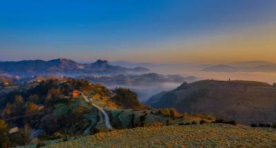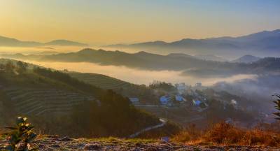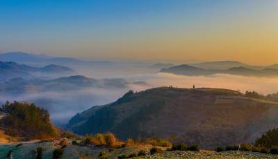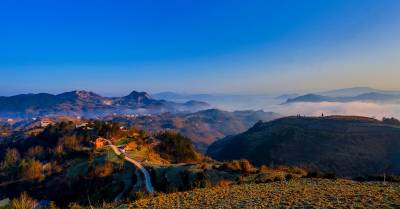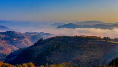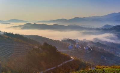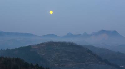 2015年12月26日,隆冬时节,竹溪县县河镇马鹿山绚丽多彩的大自然毅然美得撩人。。 当日清晨,圆圆的月亮还挂在晓星报晓的天空,薄如婚纱的晨雾就幽然升腾、铺展掩映着无际的层峦叠嶂,以及散落在绿丛间的民房。晨雾渐渐伴随着红艳艳的日出由青灰白变洁白、壮大磅礴,人间仙境的诗意也由淡渐浓。天蓝地白,茂密森林、稀密不均的村落皆若隐若现。初升的朝阳把云海还没铺展到位的大地铺成看得见却摸不着的流金似的地面。在湖北竹溪这片美域上,无论秋冬四季、天晴下雨,大美自然似有宠辱不惊,波澜不变之气,常年吸引着人们乐在欣赏之中而赞叹不己,吸引境内外游客摄影爱好者忙中偷闲、起早贪黑的云集到竹溪处处最美人间仙境采风、留影(视网温大树摄)。