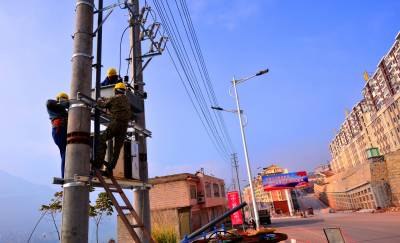 12月26日,在巴东县黄土坡滑坡整体避险安置新区—神农溪小区,供电员工正在安装配电变压器施工,小区配网改造进入收尾阶段。 为加快神农溪小区配网建设,国网巴东县供电公司抽调2个施工专班,100多人施工队伍加班加点施工,34个配电台区、4回10千伏线路8.28千米,400伏线路10.28千米改造任务将在月底完成。工程投运后,小区4475户1.57万搬迁居民将从中受益。(视界网 王祖满摄 15272999779)