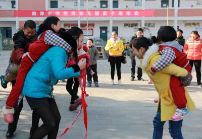 亲子互动乐融融(图文) 竹山县宝丰镇中心学校 朱本双 电话:13177481456 邮编:442213 电子信箱:zsbfzbs@126.com 身份证号码:422624196910182052 12月26日星期六,竹山县宝丰镇施洋小学附属幼儿园举办了以“家园共建,起航追梦”为主题的迎新年亲子运动会。《大脚小脚一起走》《运珍珠》等20多个亲子游戏,父带子、母带女、奶和孙、爷和孙,相依相助,其乐融融,欢声笑语充满整个幼儿园。