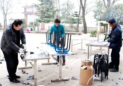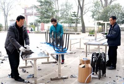 新年里 巴东学生站着吃饭将“拜拜” 29日,工人正在巴东县官渡口镇东坡小学安装学生食堂餐桌、椅等设备。 在新年即将到来之际,巴东利用中央薄改资金为农村寄宿制中小学学生餐厅配备餐桌、椅等设备,近日,各校积极组织工人抢着安装。新年里,各中小学的住读生将告别站着吃饭的历史,为学生送上新年最好的“礼物”。(视界网向国大摄)巴东县官渡口镇东坡小学